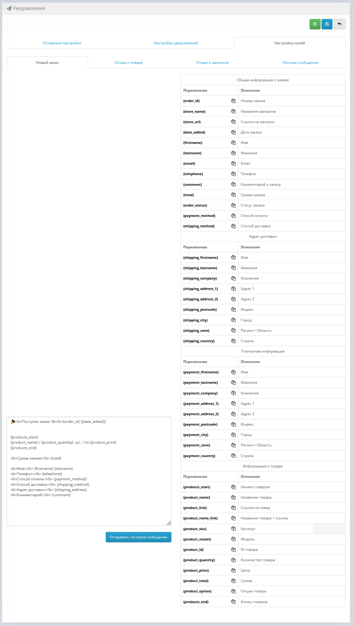 Модуль Торговая площадка | Уведомление для продавцов позволяет продавцам маркетплейса OpenCart получать мгновенные уведомления в Telegram о новых заказах, отзывах о товарах и магазине, а также о личных сообщениях. Это помогает реагировать на действия покупателей в реальном времени, повышает уровень сервиса, доверие клиентов и конверсию продаж. Для новых заказов можно создать свой индивидуальный шаблон уведомления, а для остальных событий — отзывы, личные сообщения и уведомления о магазине — достаточно отметить галочками, какие поля включать в уведомление. В будущем планируется поддержка других популярных мессенджеров для ещё большего удобства. Все уведомления идут через личных ботов продавцов, которые им надо создать через оф. телеграм бота BotFather.