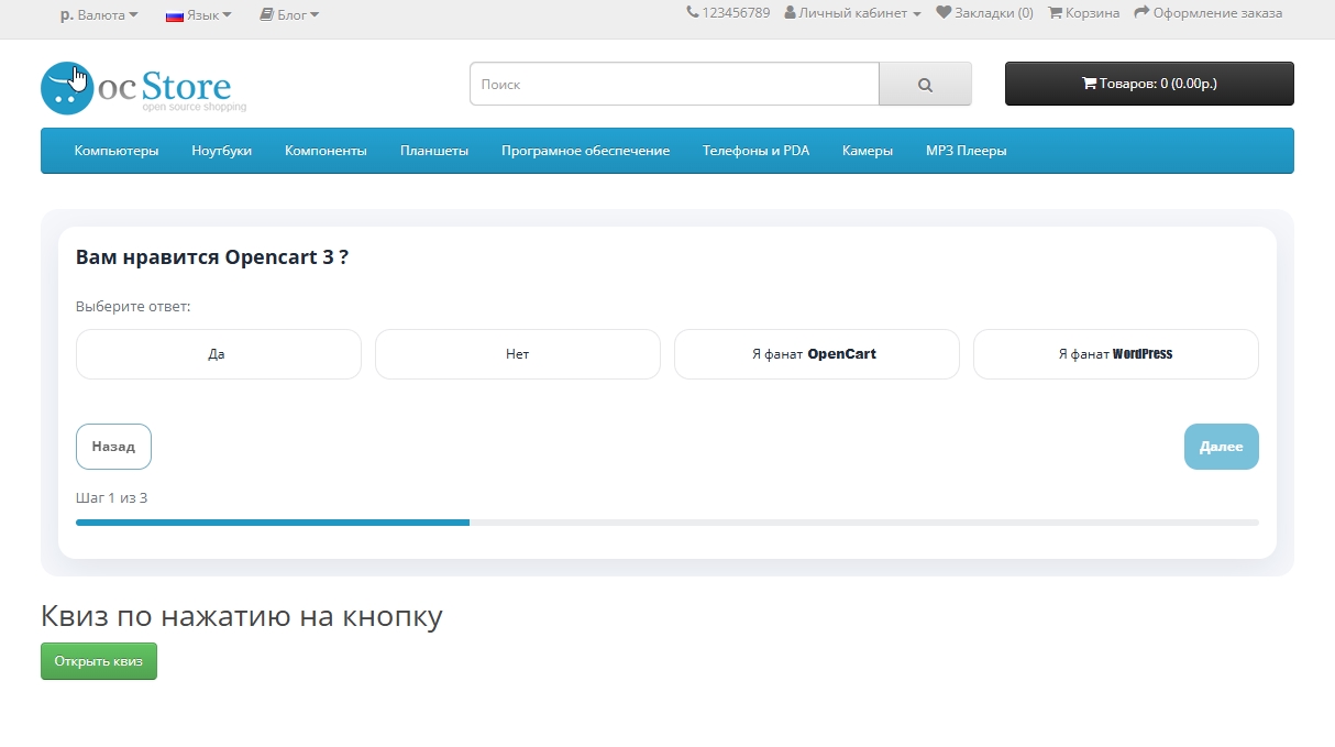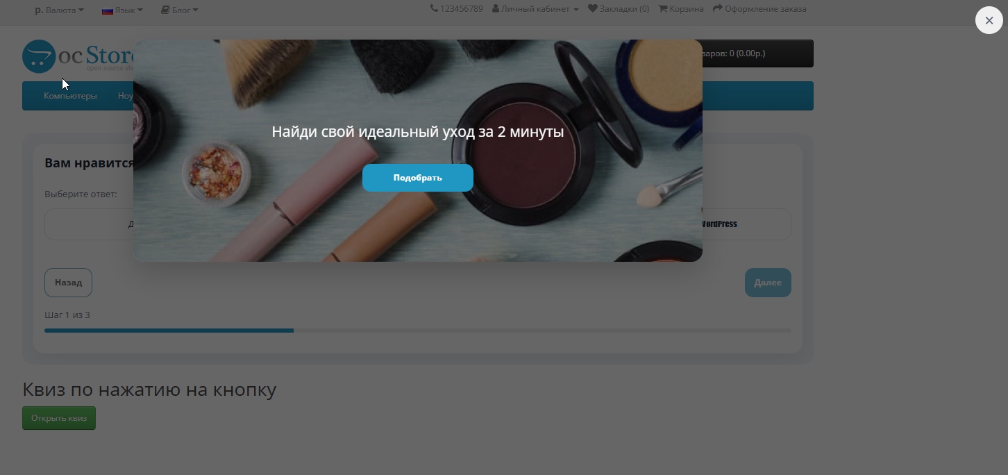 Теги: quiz, квиз, опросы, умные квизы, quiz для opencart, сбор заявок, подбор товаров, повышение конверсии, форма квиз, увеличение продаж