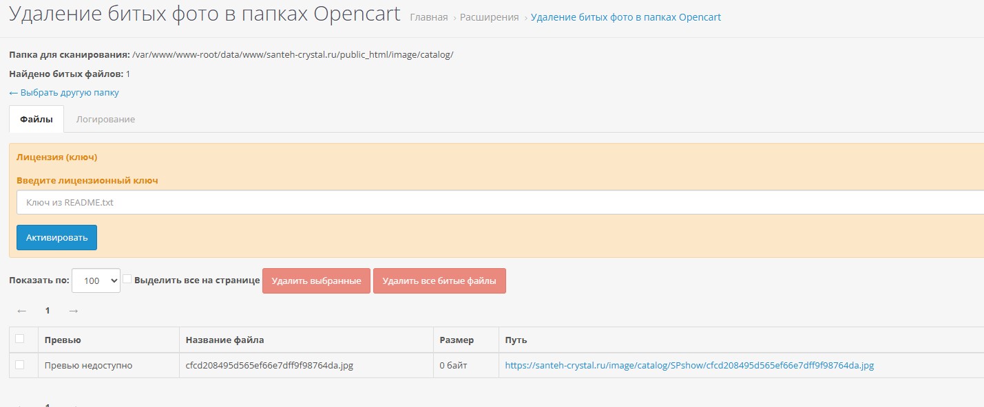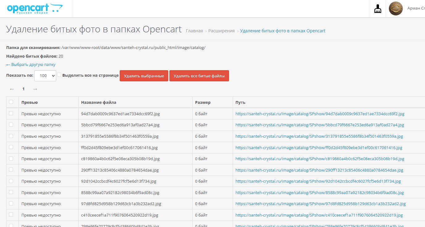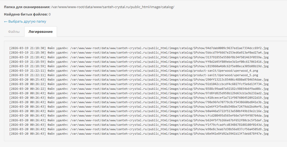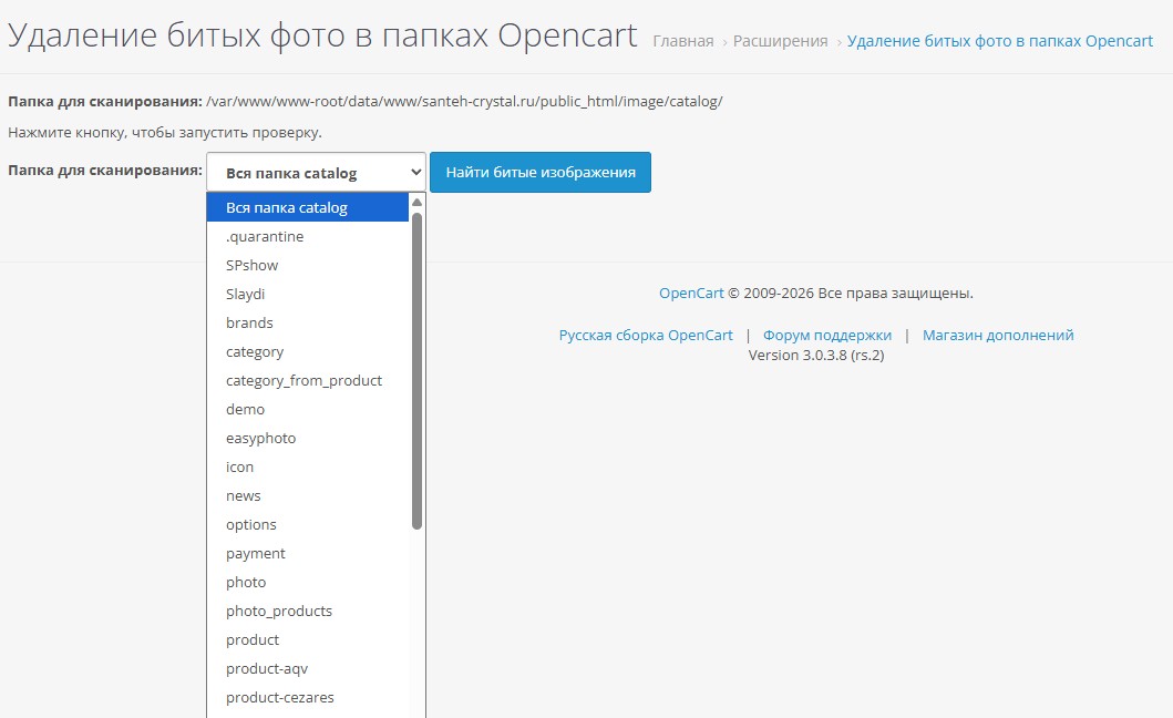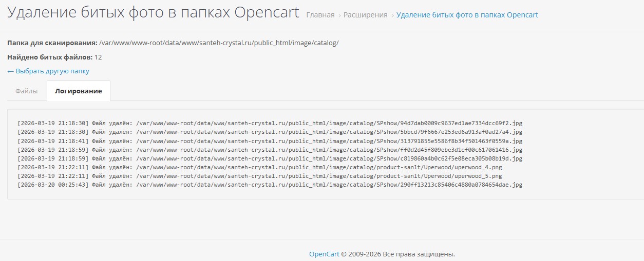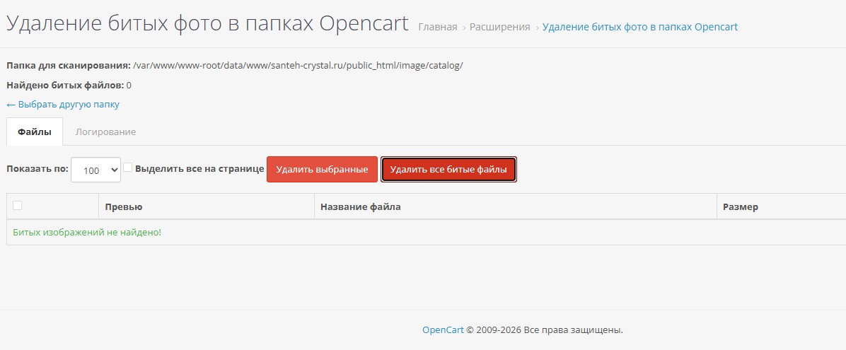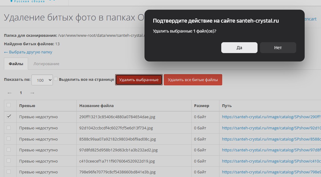 Удаление битых (поврежденных) фото в папке image/catalog