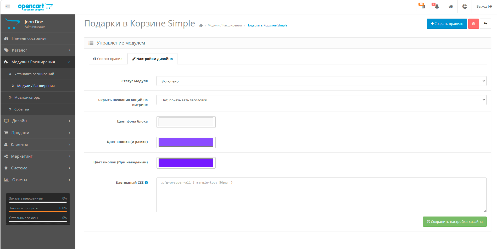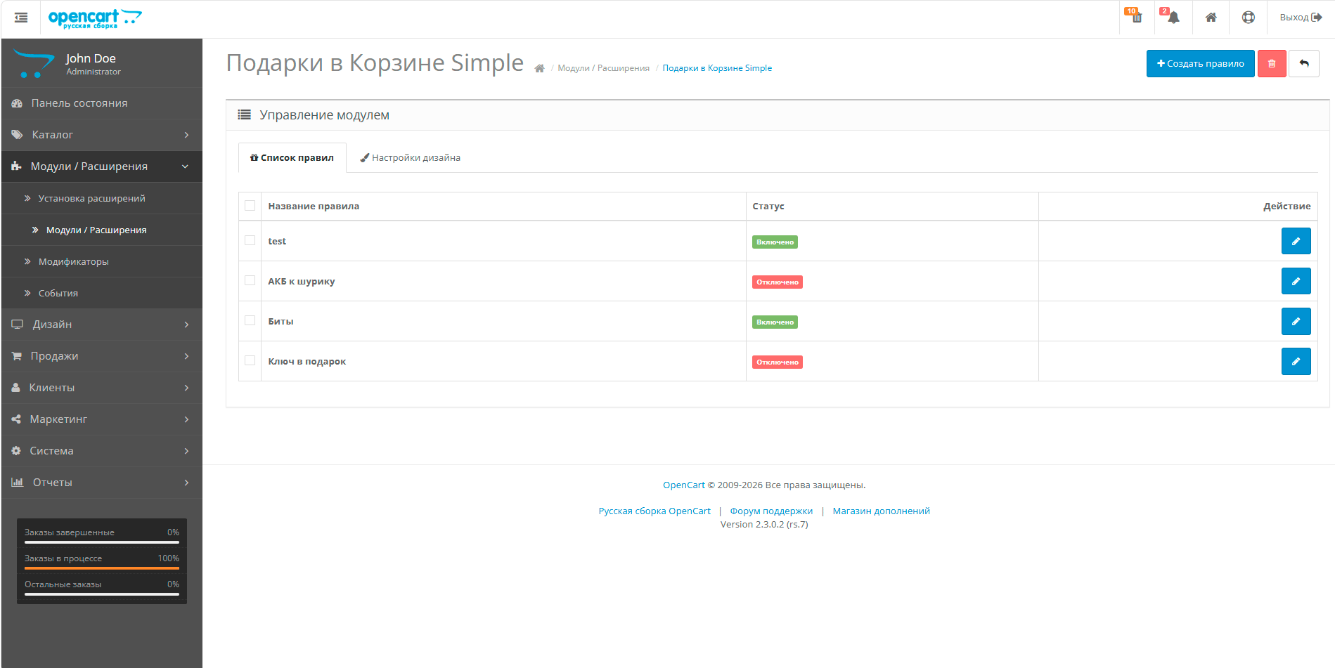 Готово! Никаких замен системных файлов. Модуль сразу появится в списке расширений.