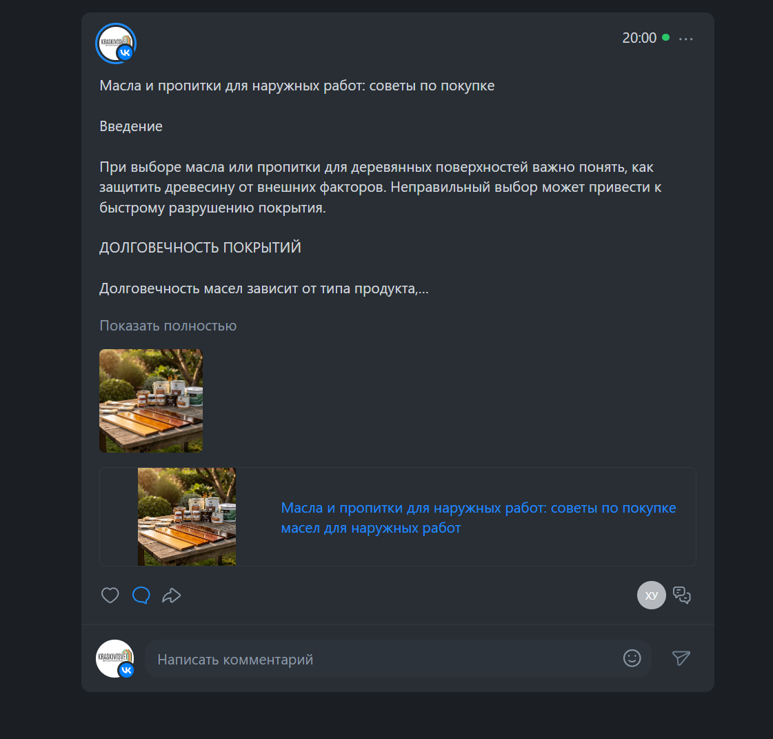 - Создаёт короткие версии поста для Telegram и экспорта в PostMyPost;