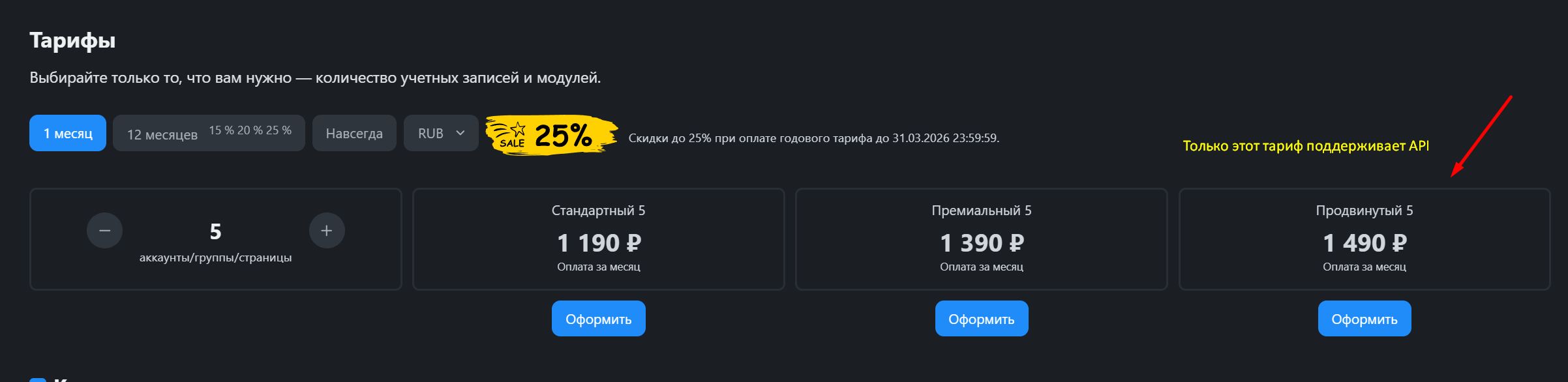 - API‑токен и ID проекта в Postmypost; (тариф Продвинутый 1490 руб./мес.)