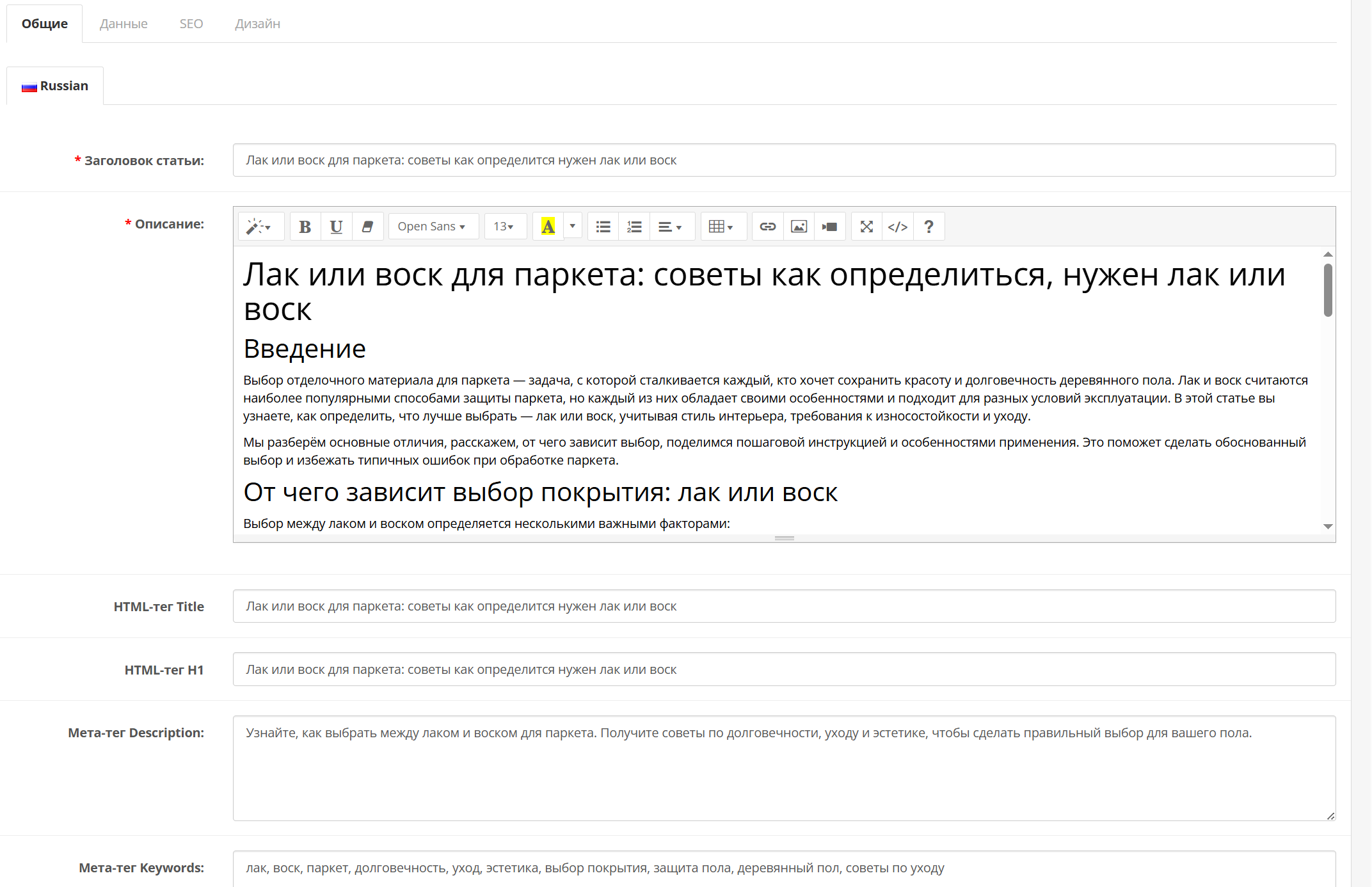 - Формирует SEO‑метаданные: Title, Description и Keywords;